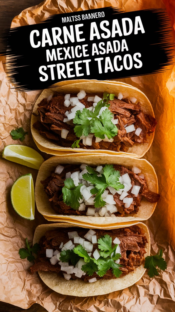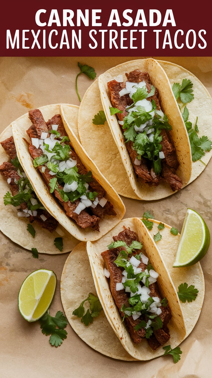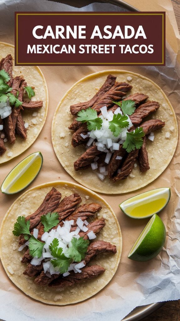 Carne Asada Mexican Street Tacos embody everything great about Mexican food — simplicity, freshness, and community. With tender marinated steak, charred tortillas, and vibrant toppings, every bite tells a story of authenticity and love for good food.