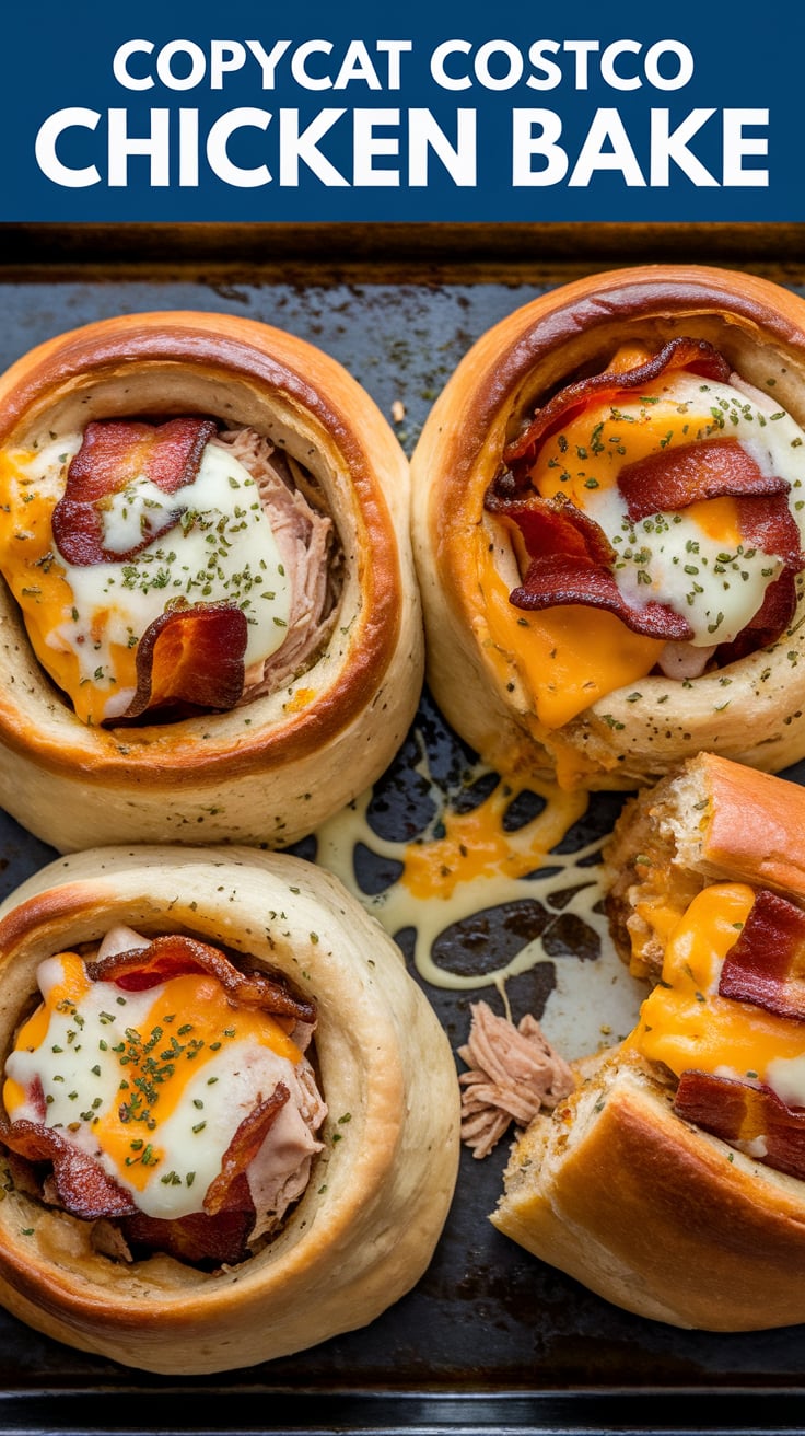 If you’ve ever strolled through Costco after a shopping trip, chances are you’ve been tempted by the golden, cheesy, and savory aroma of their famous chicken bake. This food court classic has been a comfort food favorite for years, known for its warm dough wrapped around tender chicken, crispy bacon, melted cheese, and creamy dressing. But what if you could enjoy the same taste at home—freshly baked, customizable, and more budget-friendly? That’s where this Copycat Costco Chicken Bake recipe comes in.