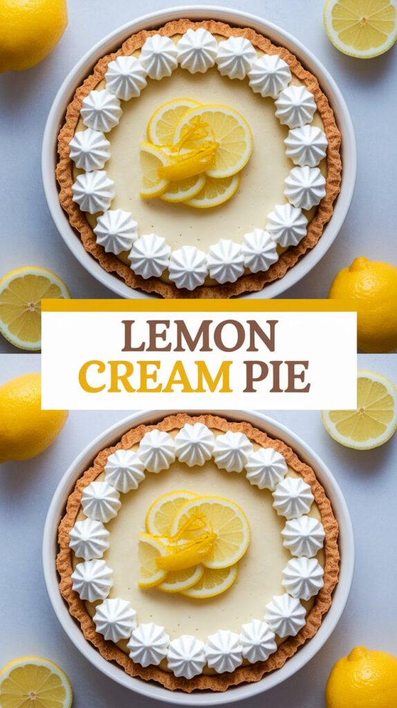 - Meringue Lemon Cream Pie: Swap whipped cream topping for lightly toasted meringue for a bakery-inspired upgrade.