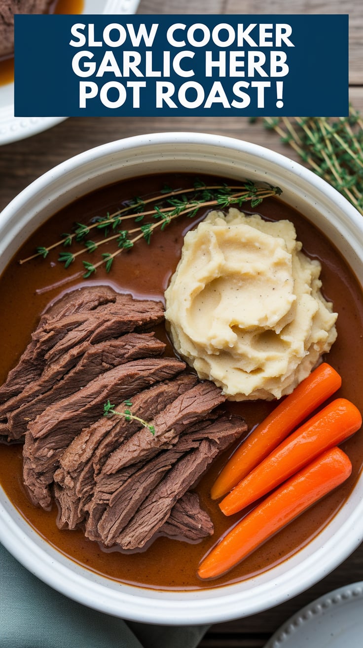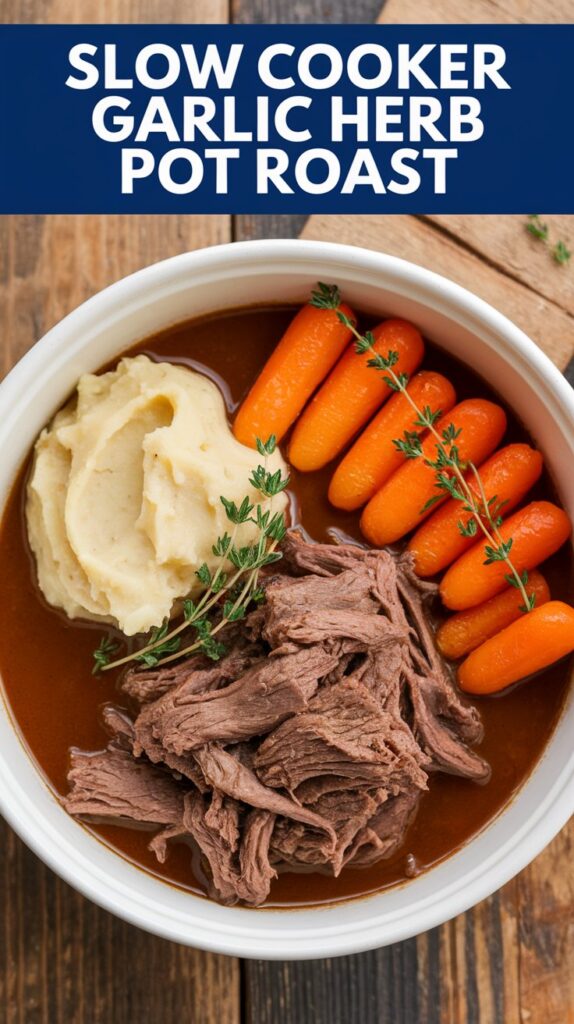 A Slow Cooker Garlic Herb Pot Roast is the definition of cozy, hearty comfort food. It’s easy to prepare, flexible for different diets, and ideal for both weeknight dinners and special occasions. With tender beef, aromatic herbs, and a savory broth, every bite is a reminder of why this classic recipe remains timeless.