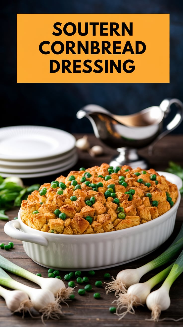 Southern cornbread dressing isn’t just food—it’s a tradition, a memory, and a taste of home. With its buttery cornbread base, fragrant herbs, and moist yet slightly crisp texture, this dish embodies Southern hospitality at its finest.